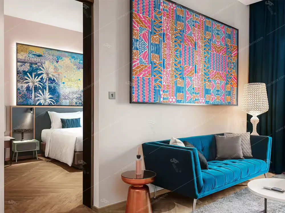 At Hotel Ora, the focus is on the "here and now" and PreMo was on hand to bring that vision to life. We curated and crafted bespoke frames and custom designs that perfectly complement the hotel’s human-centric philosophy. By integrating art that stimulates the senses and fuels creativity, our work enhances the seamless flow between work, play, and social connection. The result is an uplifting, premium environment that encourages every guest to stay present and find inspiration in every moment.