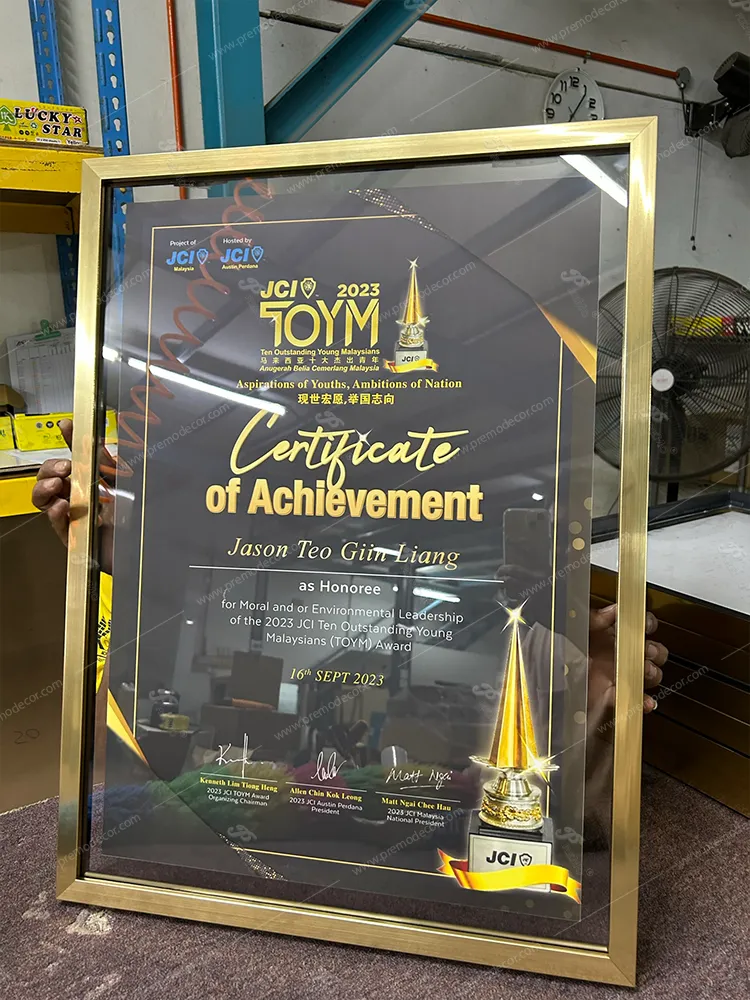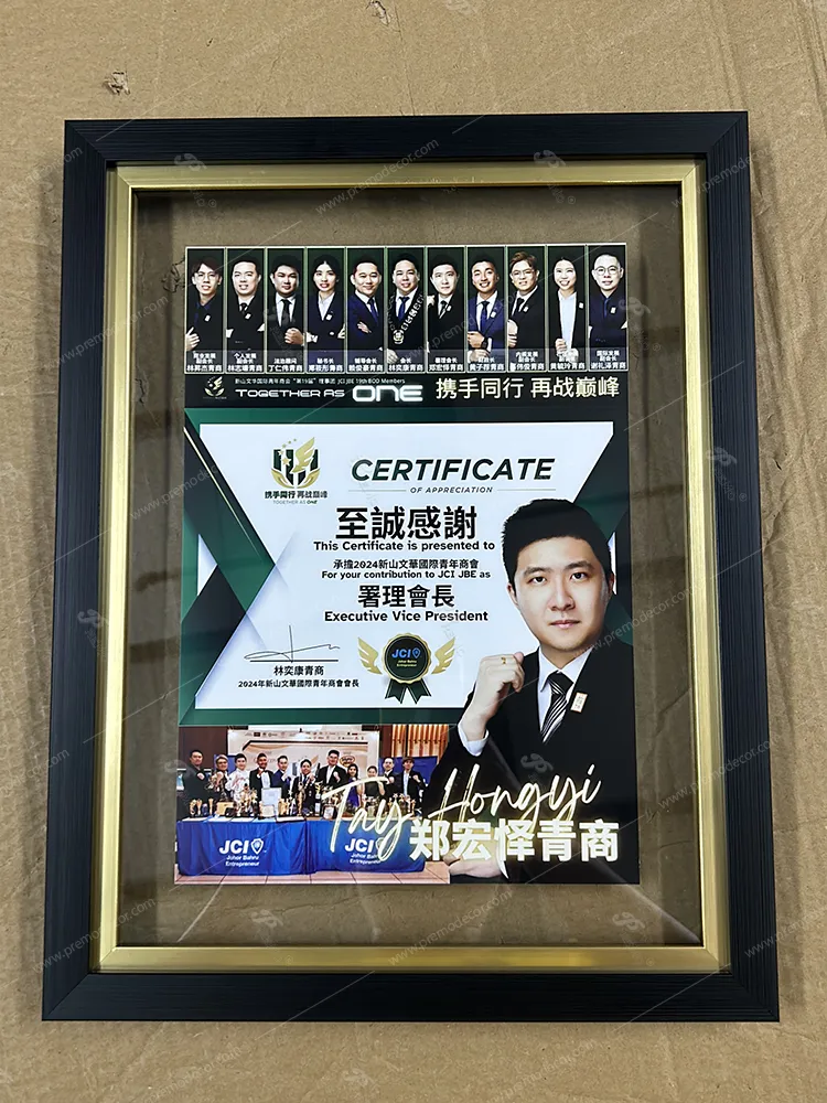 Developing leaders for a changing world is a mission for JCI. PreMo designed and supplied bespoke frames specifically crafted to showcase the special medals and certificates awarded to its members. Each custom frame serves as a prestigious tribute to the dedication and impact of these young leaders. The result is a refined, lasting display that honours personal growth and community contribution with elegance.