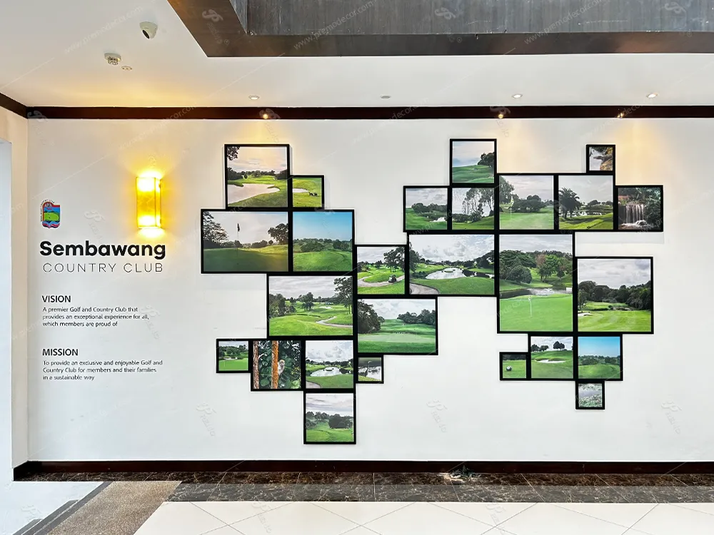 PreMo was delighted to design and deliver a bespoke photo wall arrangement for Sembawang Country Club, transforming its interiors with a clean, gallery-style presentation. The curated layout not only adds a touch of sophistication but also tells the club’s story with elegance and visual harmony.
